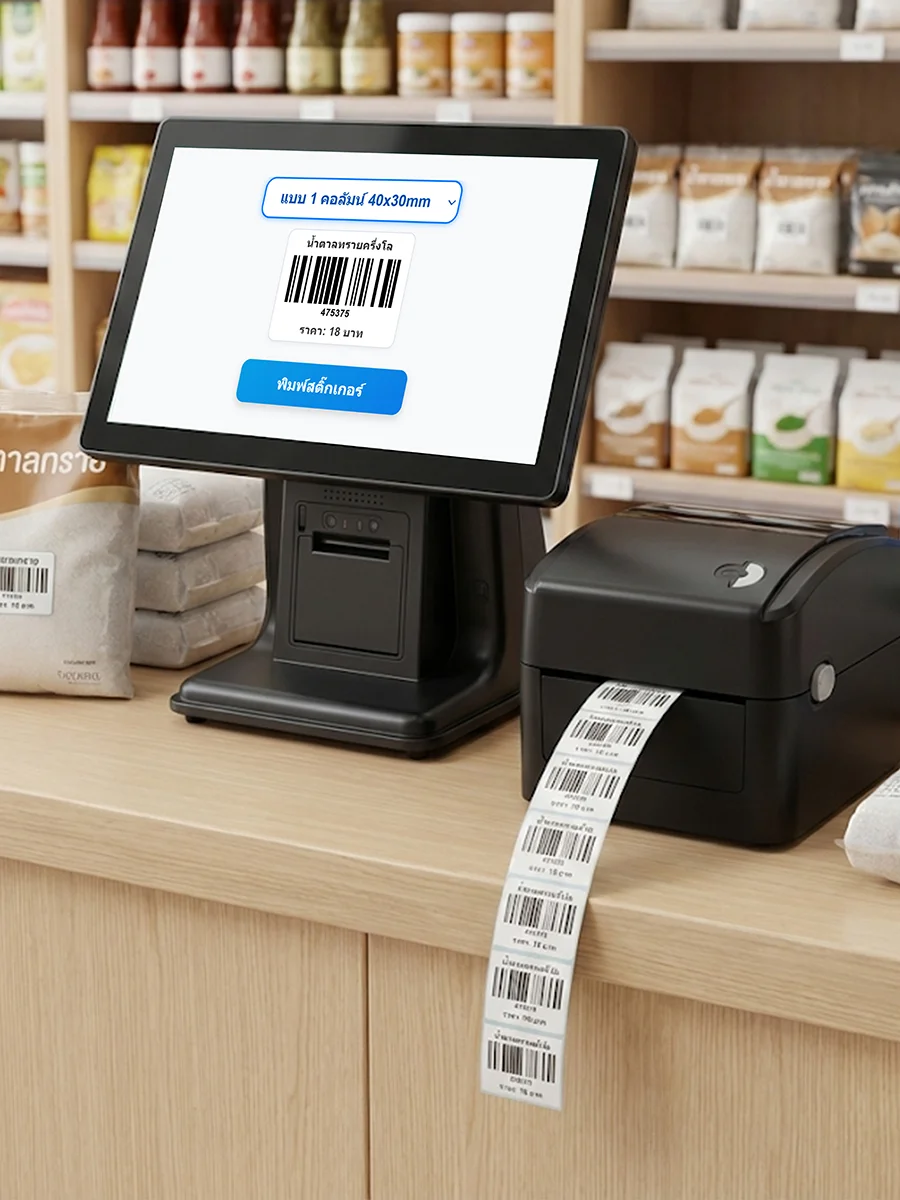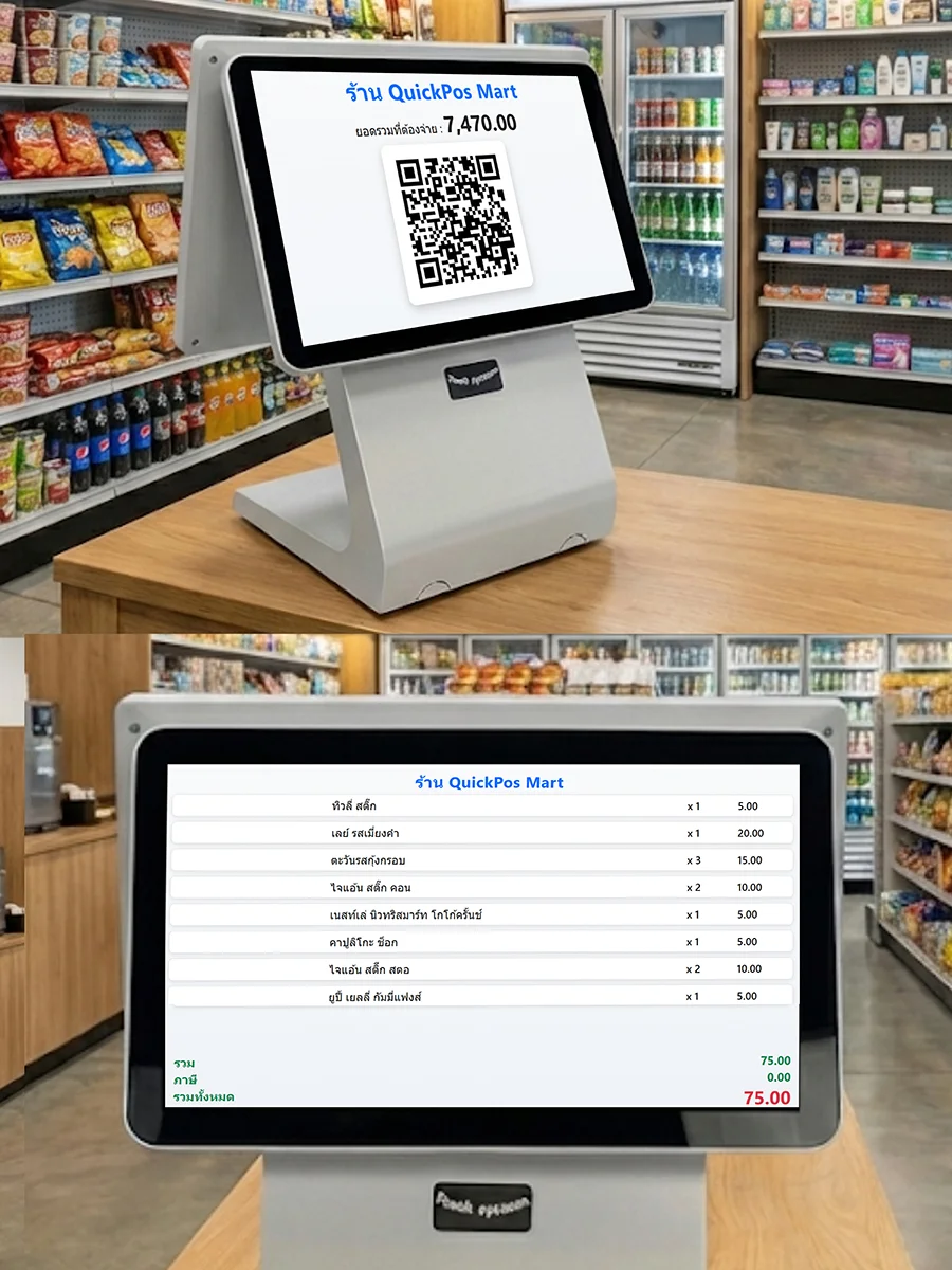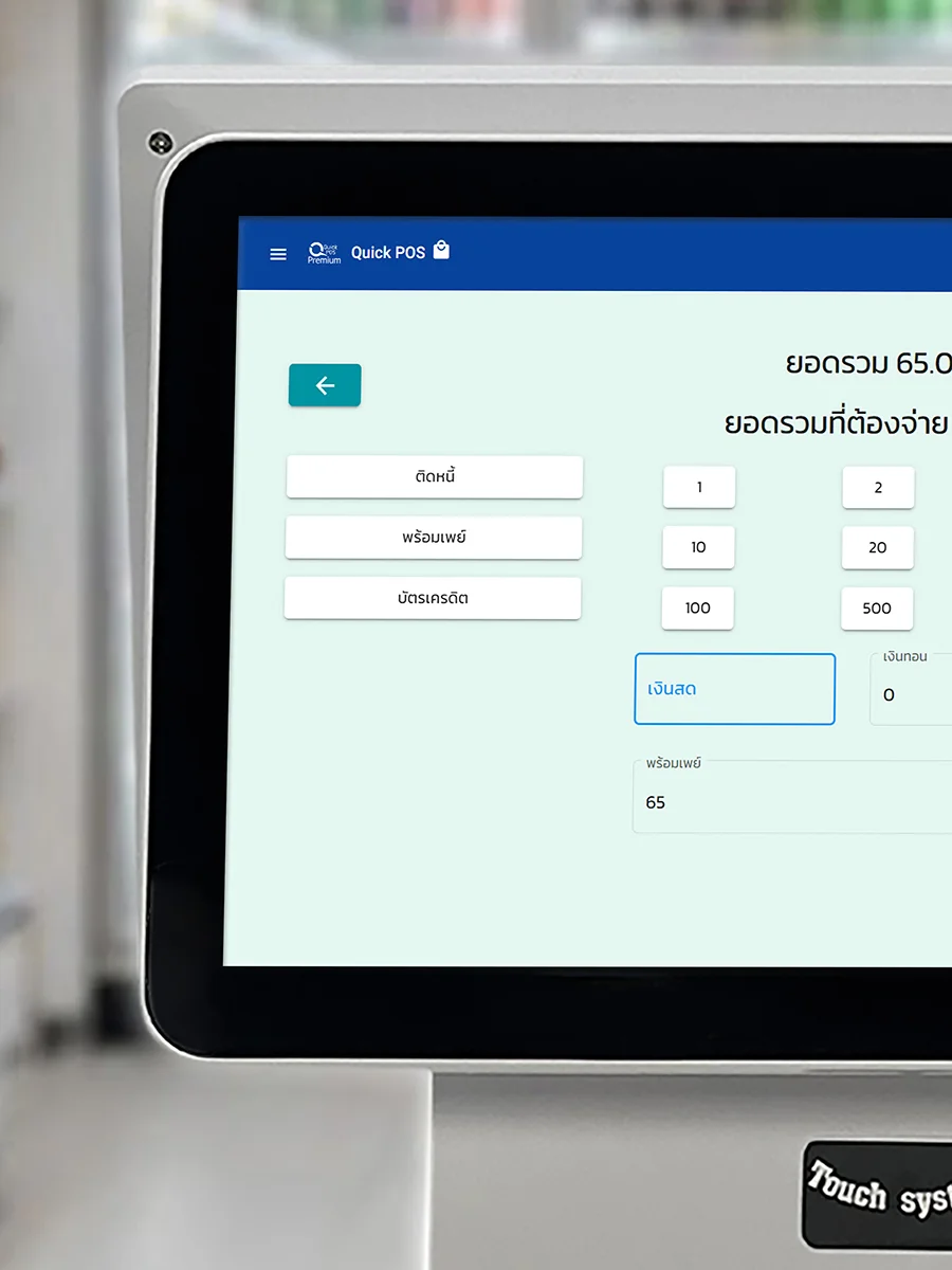 | สแกนบาร์โค้ด คลิกขาย สัมผัสจอ พิมพ์บิล เปิดลิ้นชัก | ||