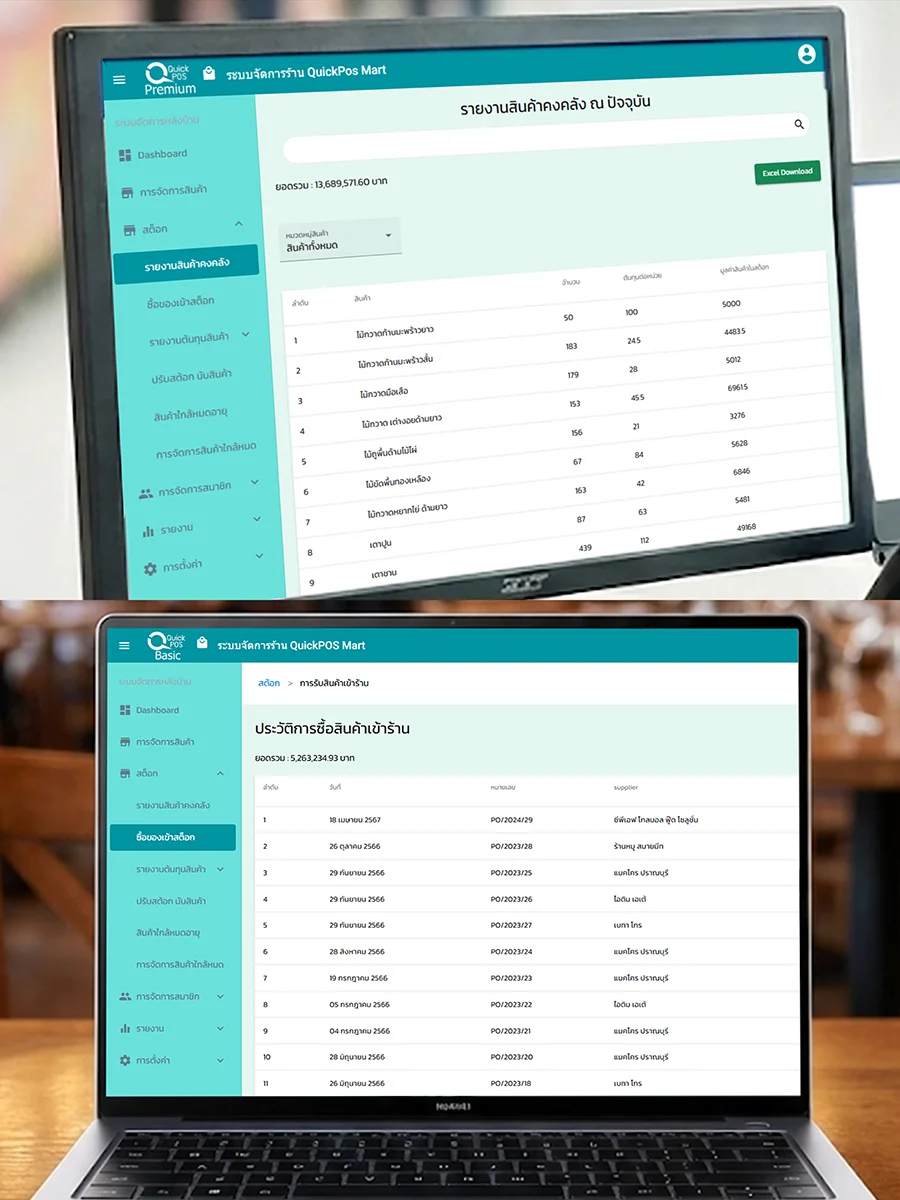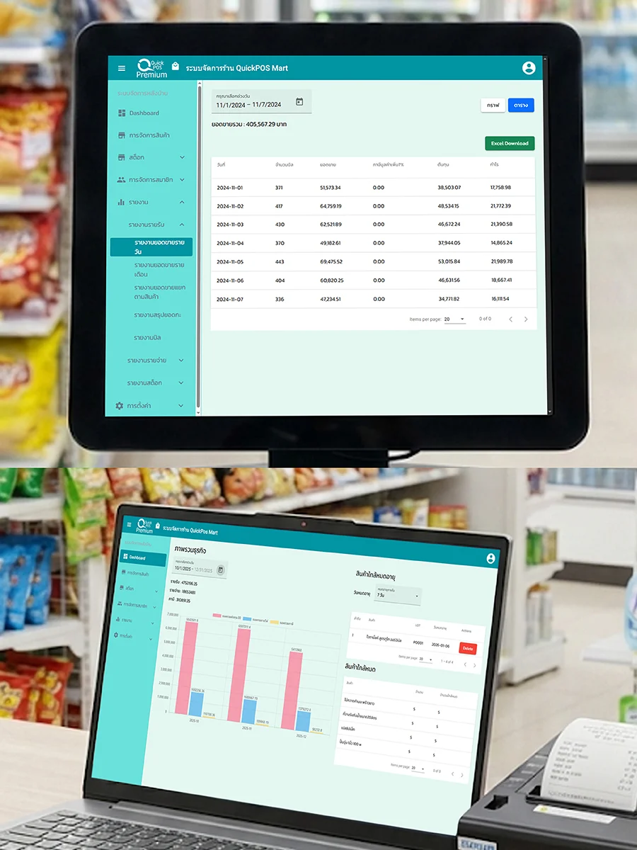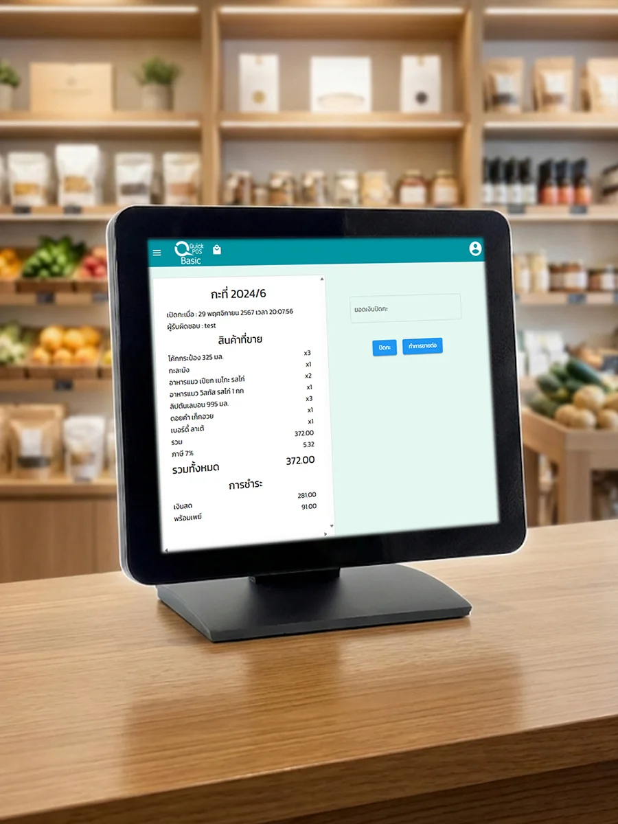 โปรแกรมขายหน้าร้าน POS ครบฟังก์ชั่นพื้นฐาน สแกนบาร์โค้ด สัมผัสจอขาย พิมพ์ใบเสร็จ เปิดลิ้นชัก จัดการสต็อก มีรายงานการขาย สินค้าขายดี ยอดกำไร รายงานสต็อก และฟังก์ชั่นอื่นๆ ที่ใช้ในร้านชำ มินิมาร์ท ขายปลีกทั่วไป