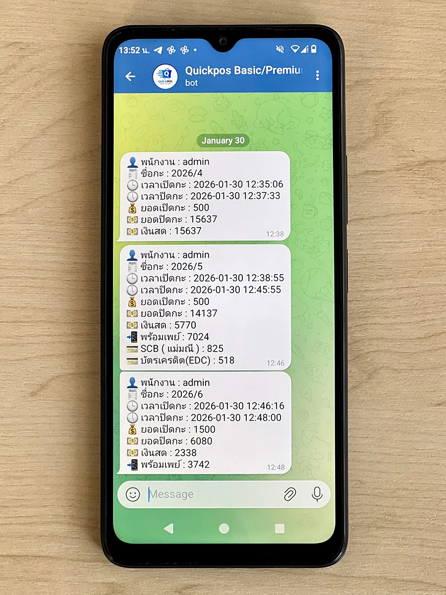 | แจ้งเตือนยอดปิดกะทาง Telegram | ||