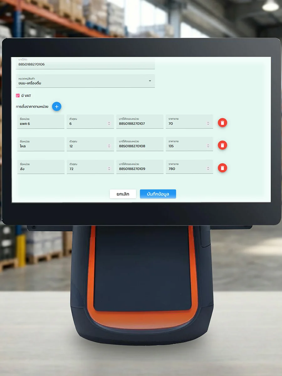 | ตัดสต็อกตามการขาย ได้ทั้งแบบชิ้น หน่วย และทศนิยม | ||