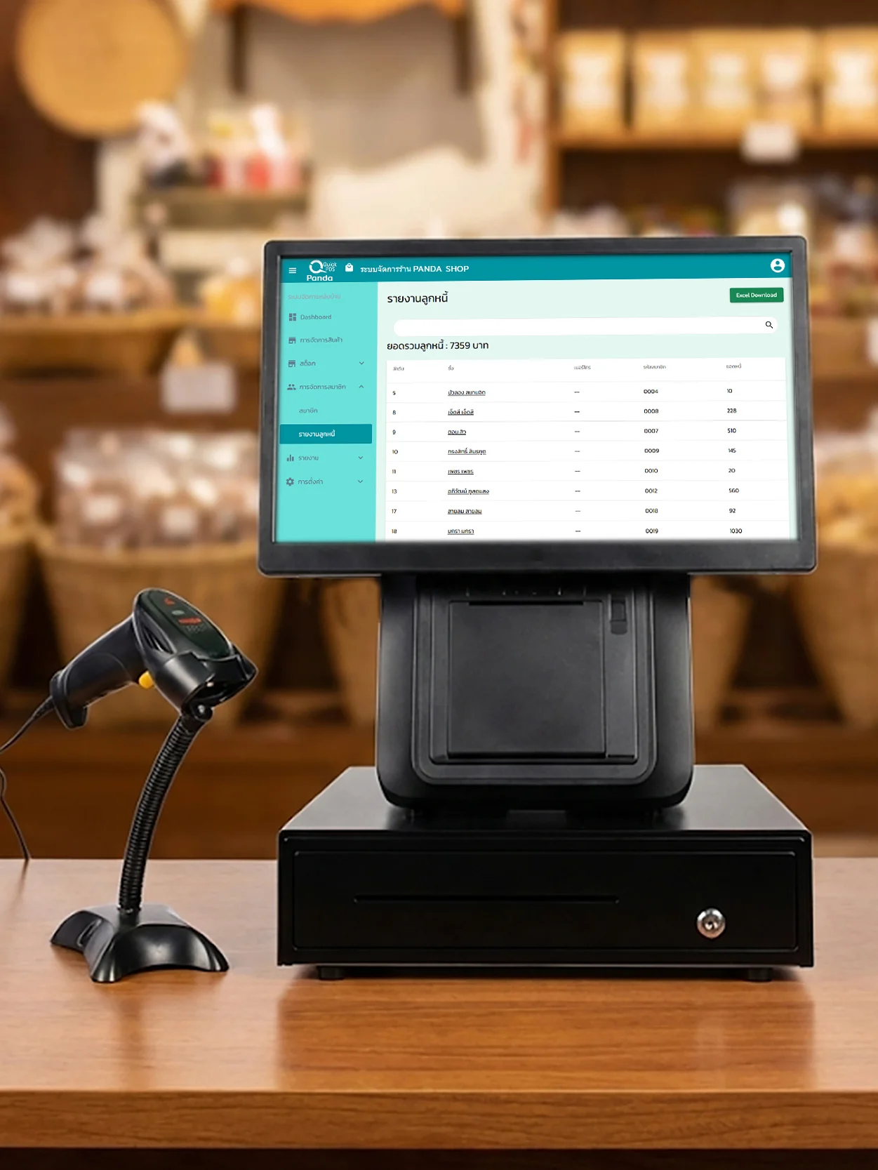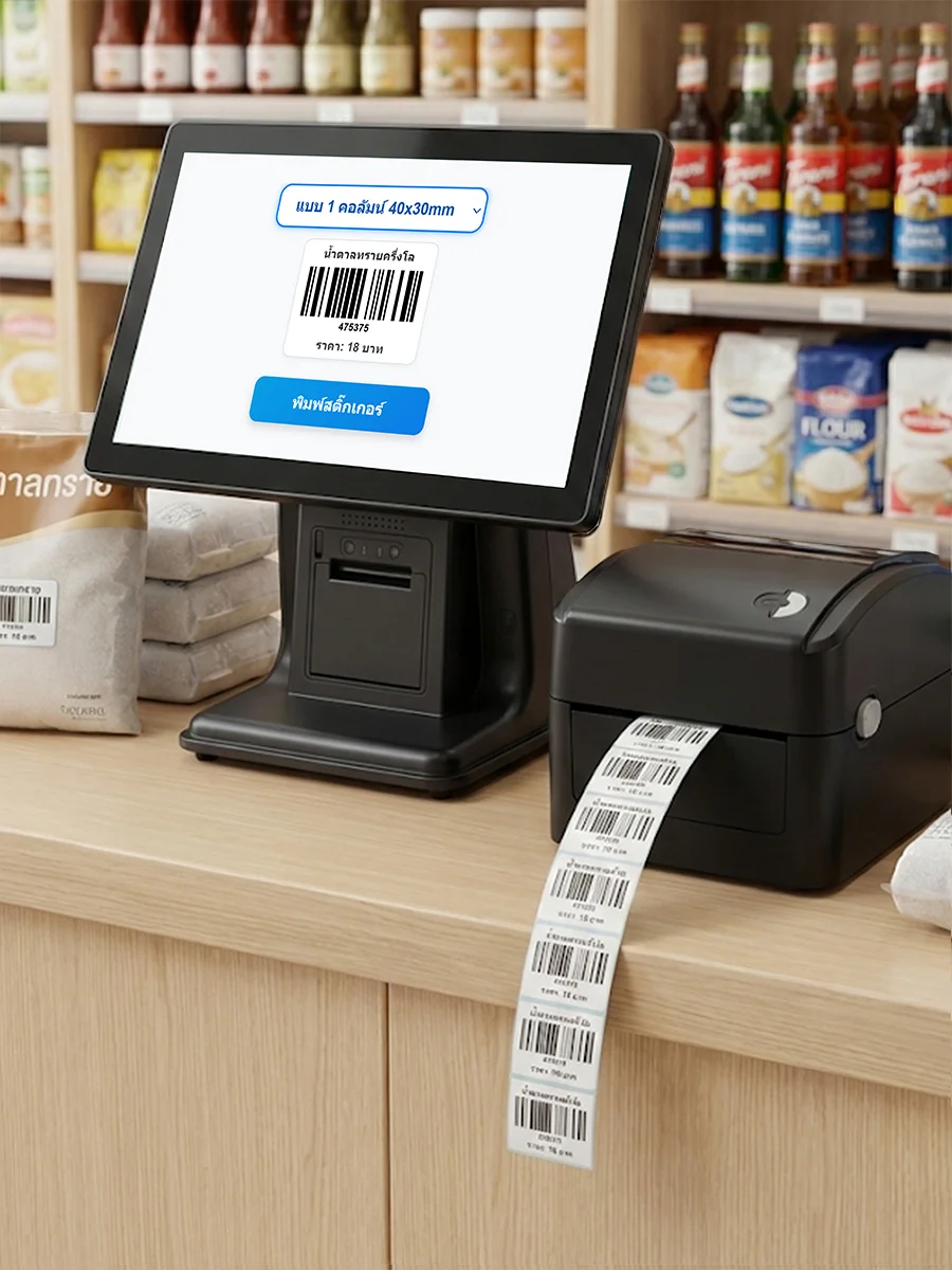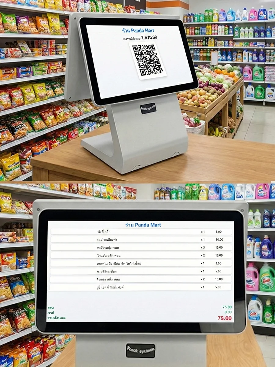 | สแกนบาร์โค้ด คลิกขาย สัมผัสจอ พิมพ์บิล เปิดลิ้นชัก | |