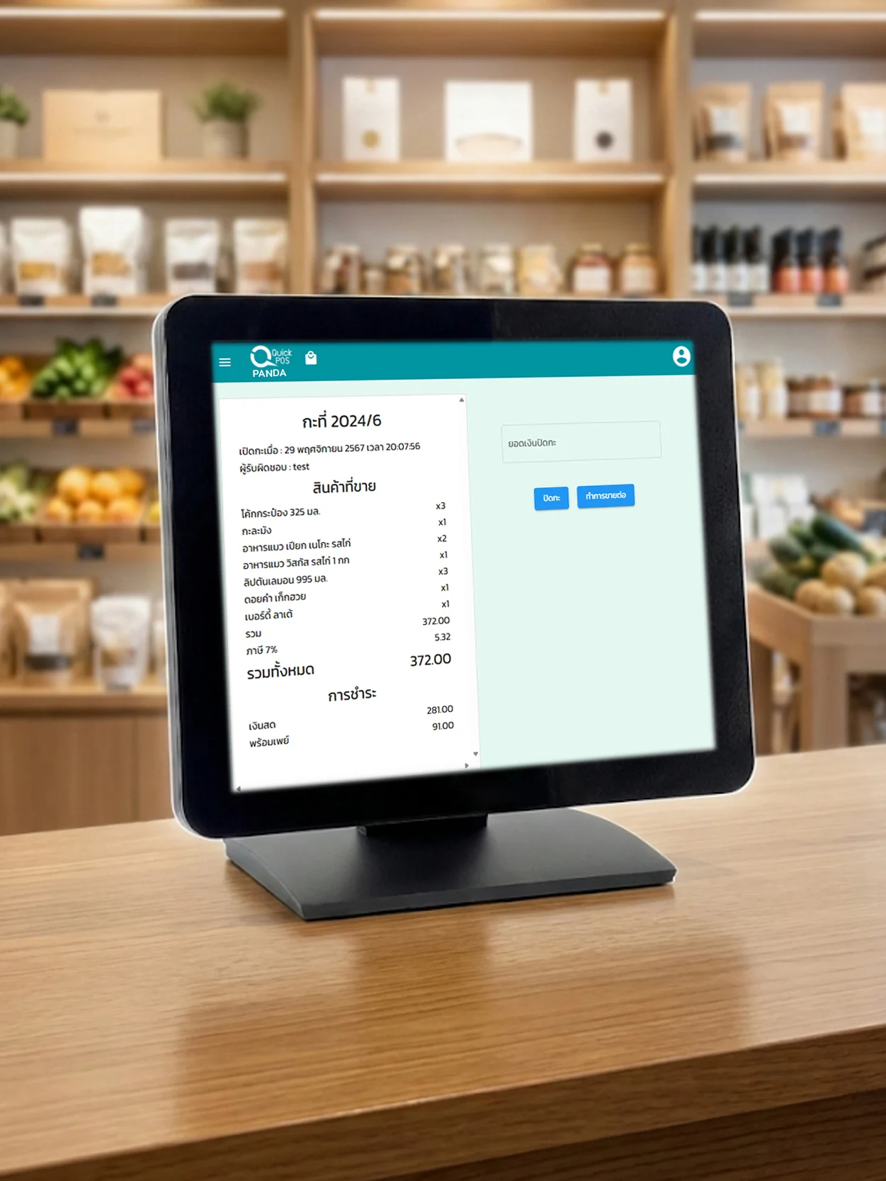 | ระบบเปิดกะ ปิดกะ เช็คยอดเงินในลิ้นชัก | |