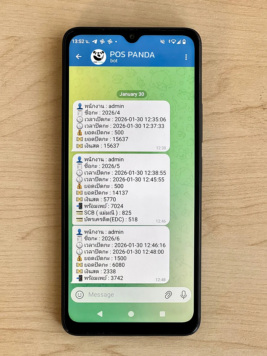 | แจ้งเตือนยอดปิดกะทาง Telegram | |