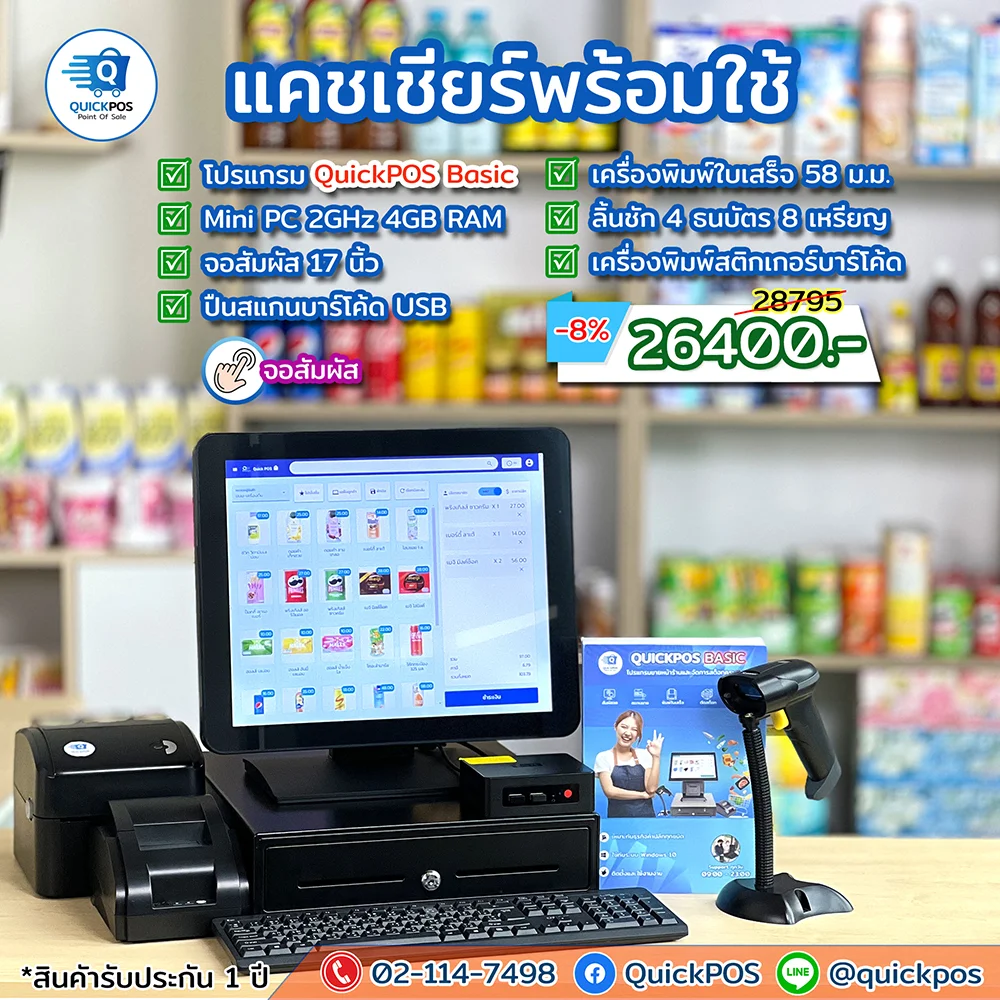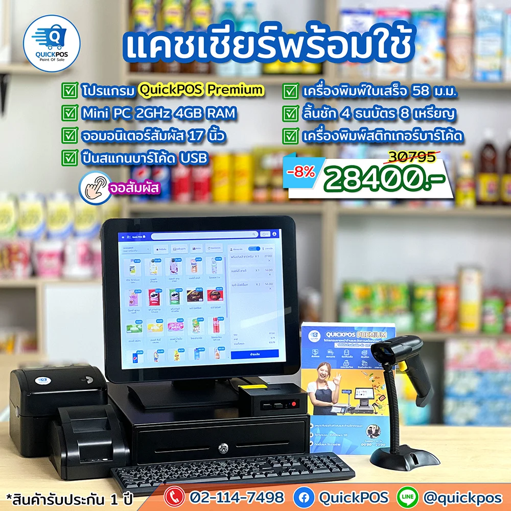 POS ครบชุด + พิมพ์บาร์โค้ด จอสัมผัส 17 นิ้ว