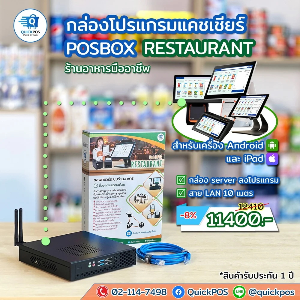 โปรแกรมร้านอาหาร + พิมพ์ใบเสร็จ + ลิ้นชัก + พิมพ์เข้าครัว + อุปกรณ์เน็ตเวิร์ค