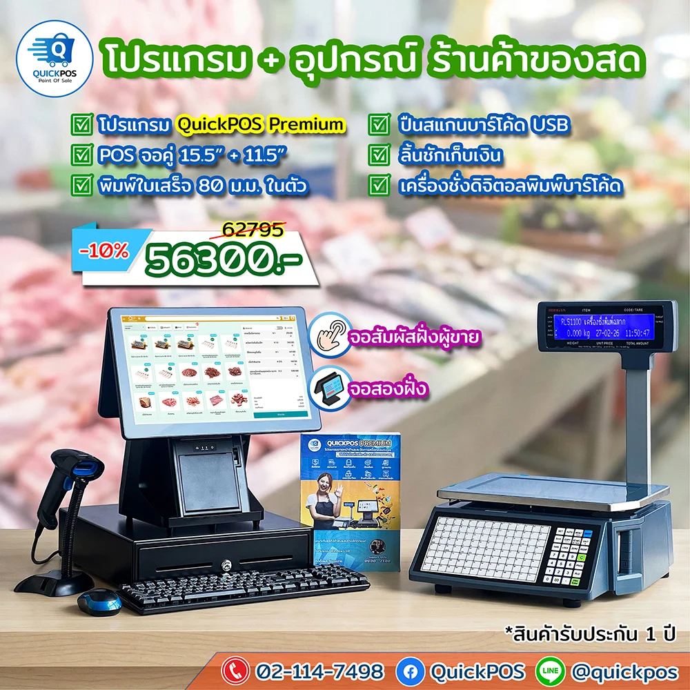POS พร้อมใช้ ร้านของสด จอคู่ เครื่องชั่ง