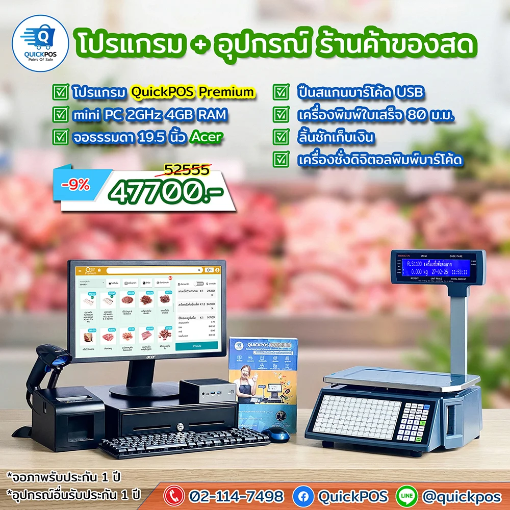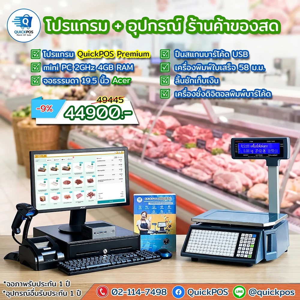 POS พร้อมใช้ ร้านของสด จอธรรมดา เครื่องพิมพ์ 80 เครื่องชั่ง