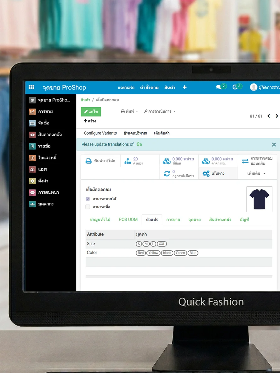 | การจัดการคุณลักษณะ เช่น สี ไซส์ รุ่น | |