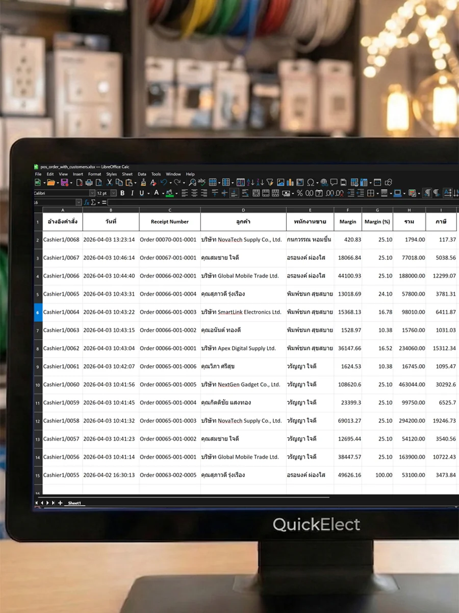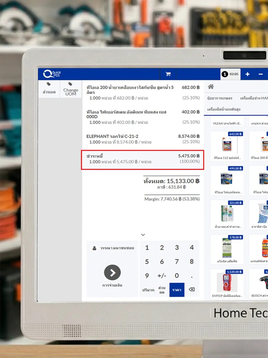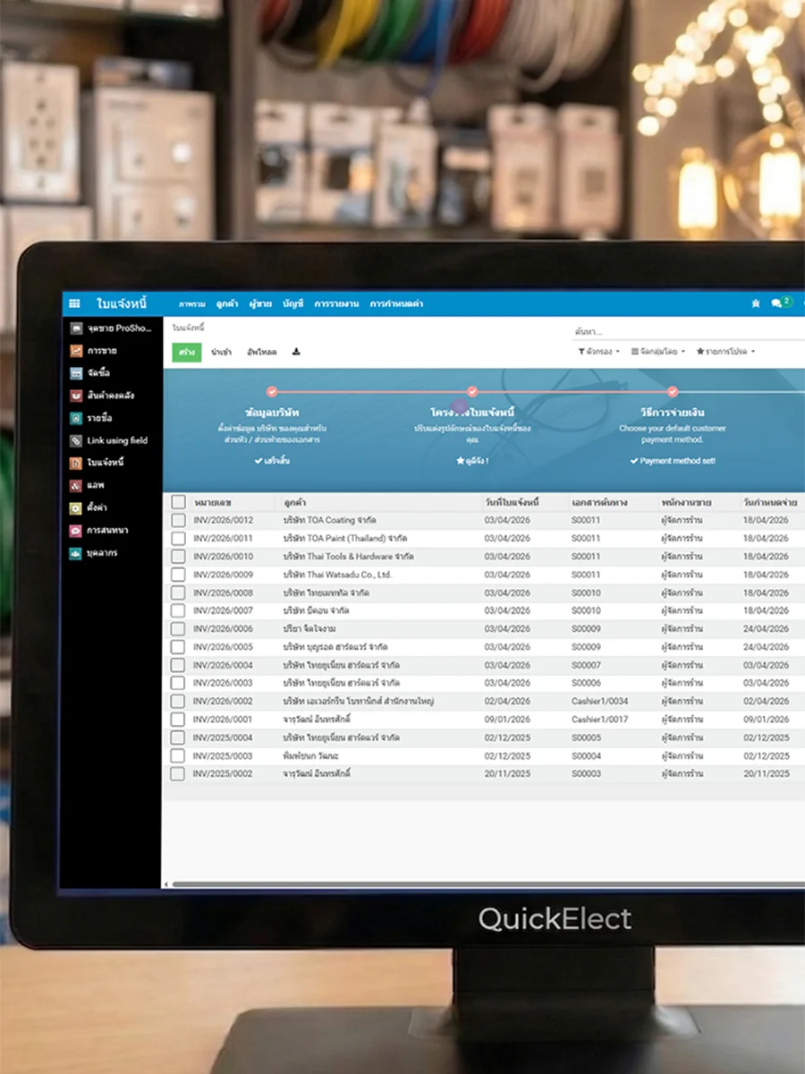 ครอบคลุมการทำงานทุกมิติของธุรกิจ ตั้งแต่การขายหน้าร้าน จัดการสต็อก ข้อมูลการขาย การเงิน ภาษี โอนย้ายสินค้า ข้อมูลพนักงาน รองรับการขายทั้งเงินสด เปิดเครดิต และการชำระเป็นงวด ออกเอกสารทางบัญชี ใบแจ้งหนี้ ใบเสร็จรับเงิน ใบกำกับภาษี ใบวางบิล ใบส่งสินค้า อย่างครบถ้วน ทำให้การทำงานสอดคล้องรวมศูนย์ เป็นอันหนึ่งอันเดียว และจัดการได้อย่างเป็นระบบ ไม่ต้องเพิ่มหรือสลับใช้ซอฟต์แวร์อื่นๆ ในการทำงาน ควบคุมทุกอย่างด้วยมือของคุณอย่างสมบูรณ์