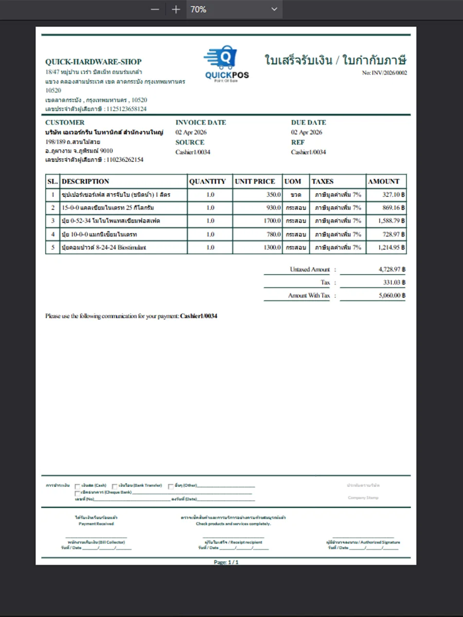 ออกใบเสนอราคา ใบแจ้งหนี้ ใบส่งสินค้า